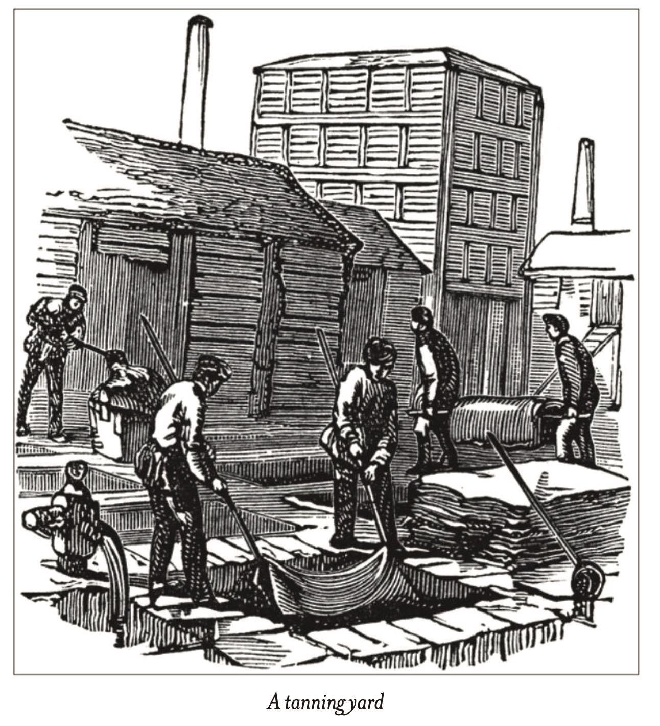 Tanning then was a messy business involving washing off blood, dung and dirt by a stream, removal of flesh and hair and then soaking of the leather in pits containing urine and lime. You can imagine that the pollution and health hazards from this industry were significant.