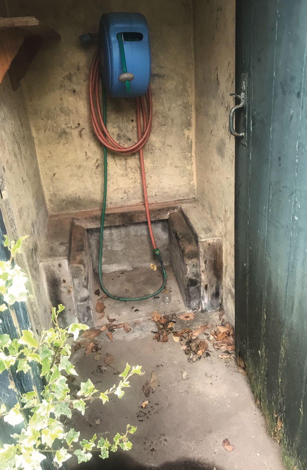 Sam and Adrian about 30 years ago (early 1990’s) noticed that their lawn showed a circular dead patch near the front of their house and discovered the outline of an old well lining and started to investigate. One thing led to another and following some excavation of the old well shaft and retrieval of all sorts of the usual well debris such as old bottles, china etc they came across some WWII munitions including a hand grenade and various bullet clips. Interesting stuff and they thought, just like I would, why not put this on the mantelpiece! Later on though someone suggested that this should be checked out and the police were called. Huge excitement in a quiet village in the 90’s for our local PC who called the bomb disposal unit and said hand grenade was exploded in an adjacent field. Yes, it was alive! Was this just a Home Guard conscript happily disposing of his WWII obligations down a handy well? Any thoughts? The well now looks good with new lining and frame added to the top. There is another old well linked to this property that used to serve an old livestock building, and in total the four Primrose Cottages shared two wells between them. Adrian recalls that even when piped water supply arrived it consisted just of a single shared standpipe in front of the cottages. There were also two privies at the back shared between two cottages each.