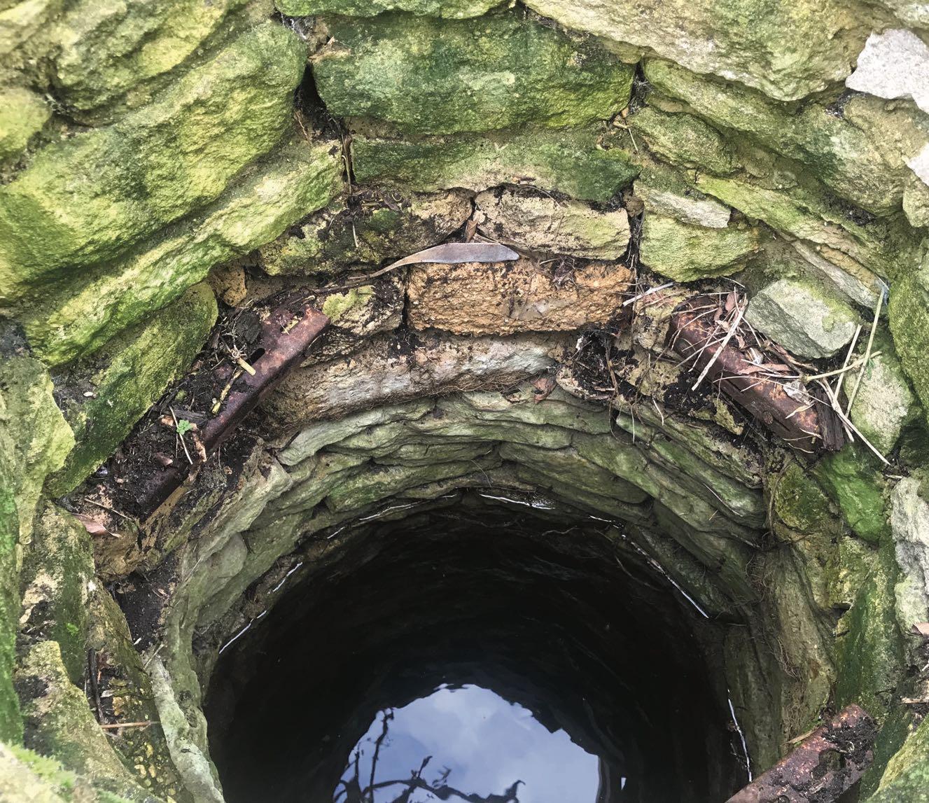 This well was found several years ago, after doing some landscaping work. It is flask-shaped, which is apparently quite common, with dry stone wall construction, so that water seeps in from the sides as well as appearing at the bottom. It was dug out manually a further 1.5 metres or so by a rather eccentric company that specialises in this sort of thing - https://www.wellmasters.co.uk. The well to now used to water the garden.