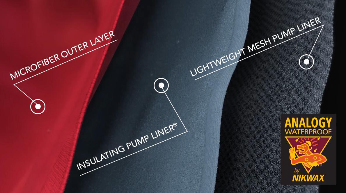 Superior weather protection, sweat management, and temperature control are provided by Nikwax® Analogy® Waterproof fabric combined with two-way twin zips and forward facing arm vents.