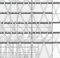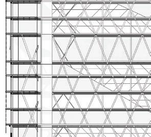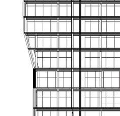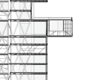 7. Overhangs shield south-facing bridge and upper facade for rhythm of angled forms.