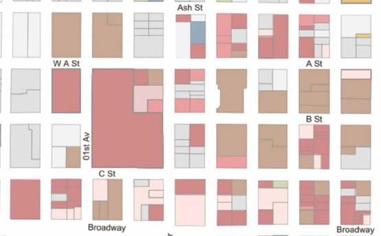 Cultivating connection and removing barriers to public access, this collage emphasizes the creation of a space that is active at all times. All five senses are utilized inactivating the space to create memorable user experience and aid in providing a strong identity for this area. Both visually and physically connecting to other hubs in the downtown area such as the waterfront, convention center, little Italy, and aslamp, a harmony is created between the existing architectural contexts. A balance is created between, commercial, residential, and government sectors to encourage positive social gatherings and healthy activities to strengthen the sense of community.