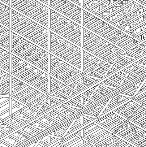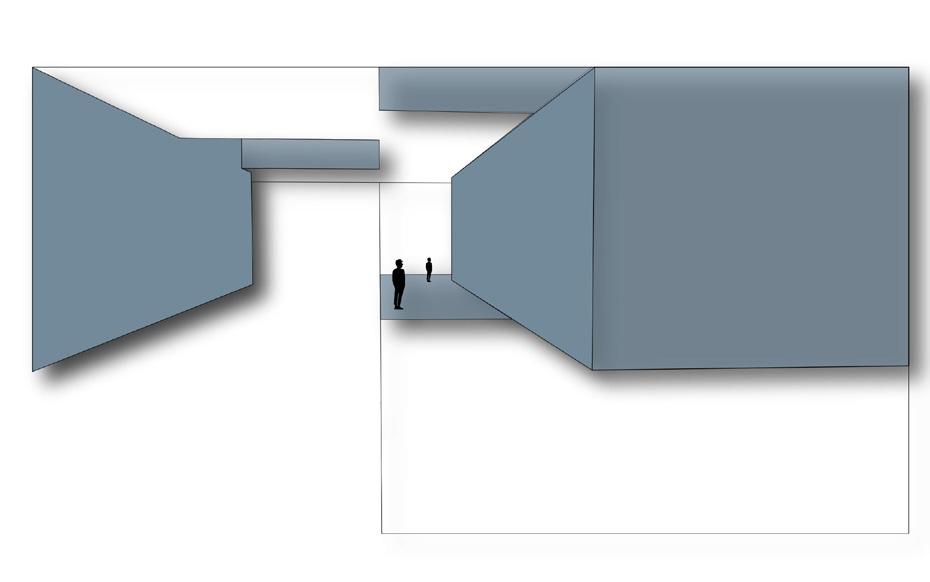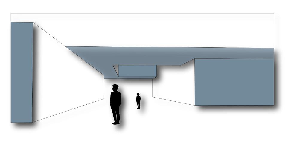 Larger openings spanning entirety of building up to sky break typical user sightlines while framing the sky uniquely. This promotes slower circulation and sparks user curiousity about their environment.