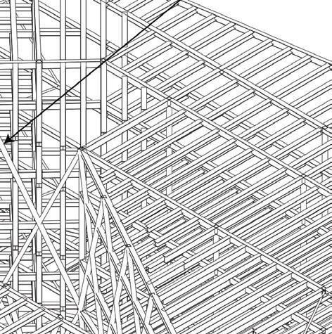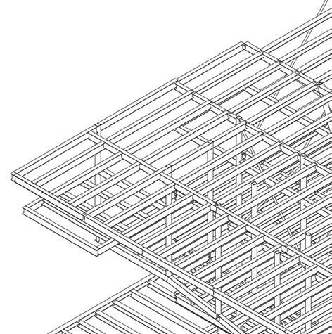 7. Overhangs added to south-facing bridge and upper facade for rhythm of angled forms.