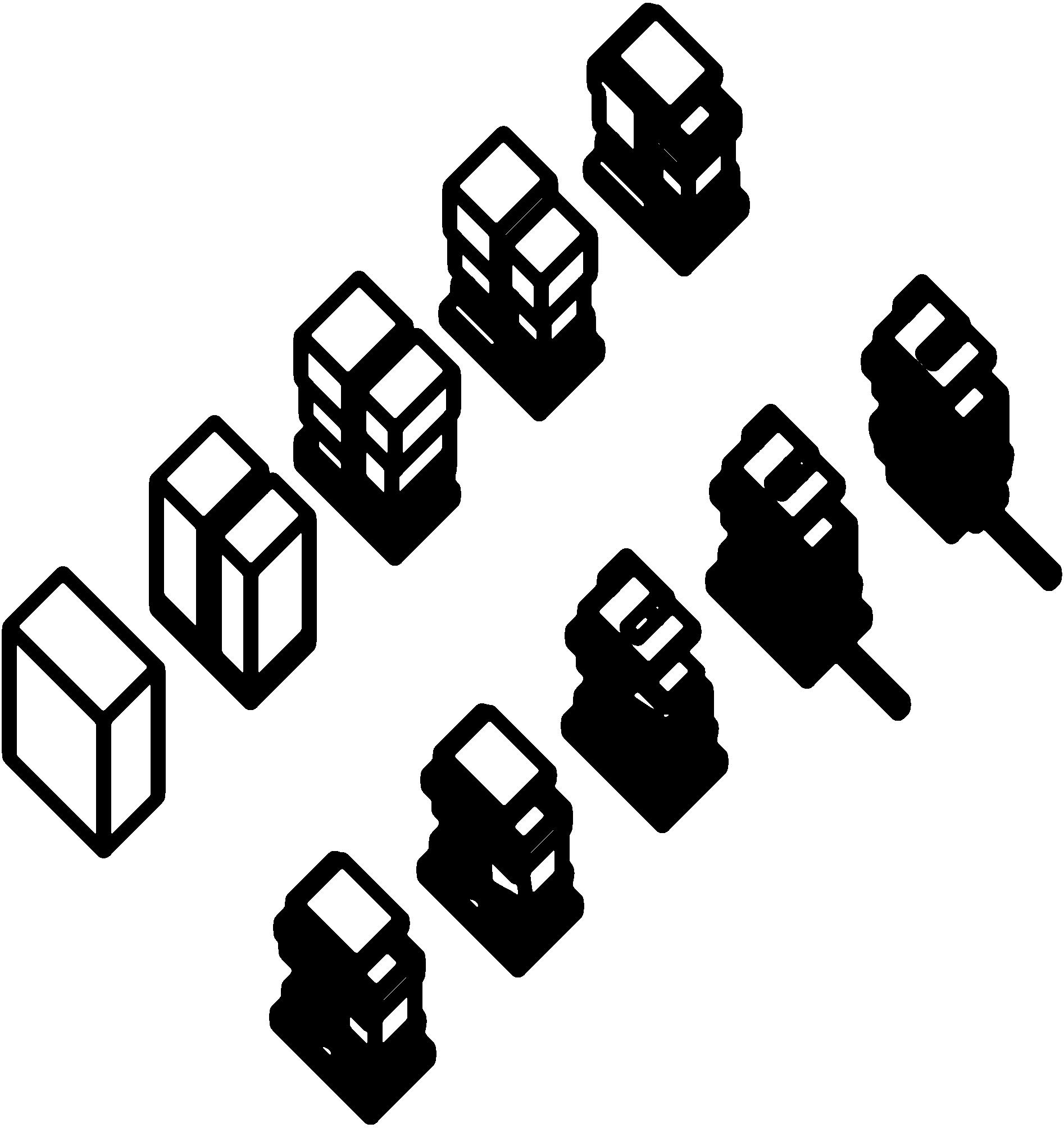 1. Building covers half of lot (150’ x 200’ x 250’).