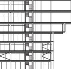 8. Glass stairwell area for diverse circulation and play of light/shadow.