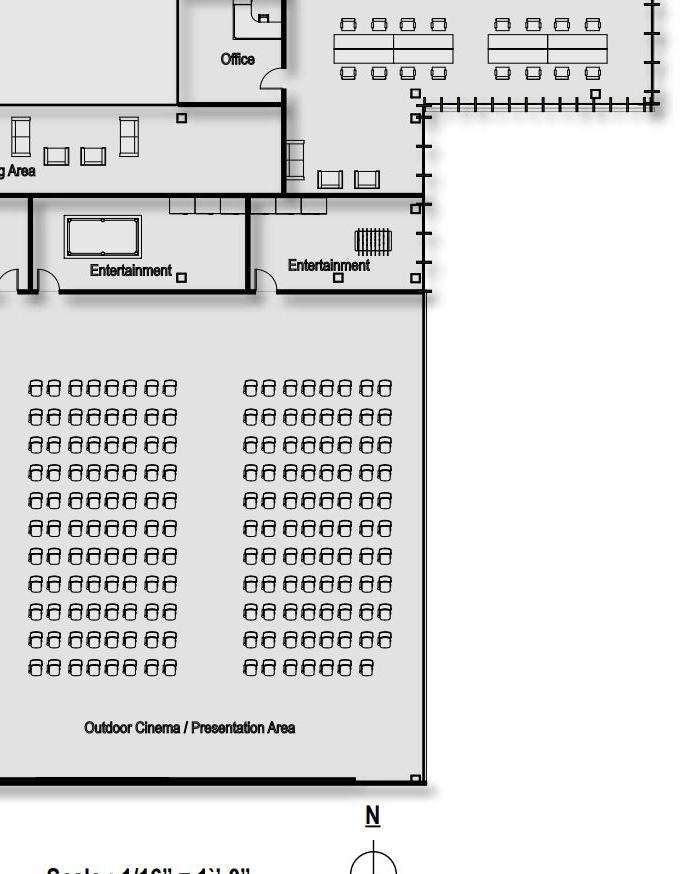 4. Southwest corner delegated as slanted indoor garden and circulation area to minimize heat.