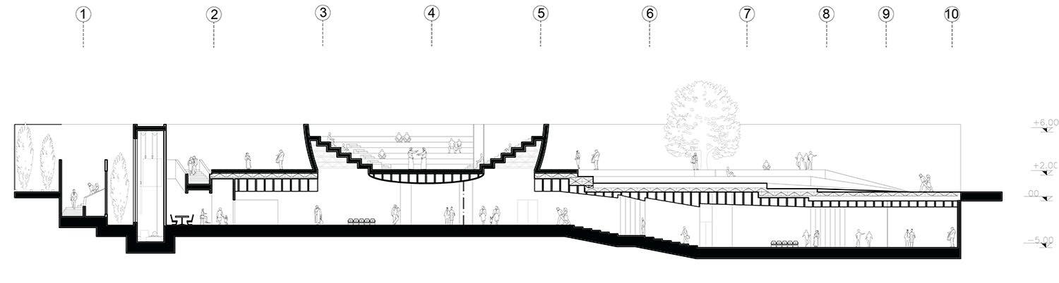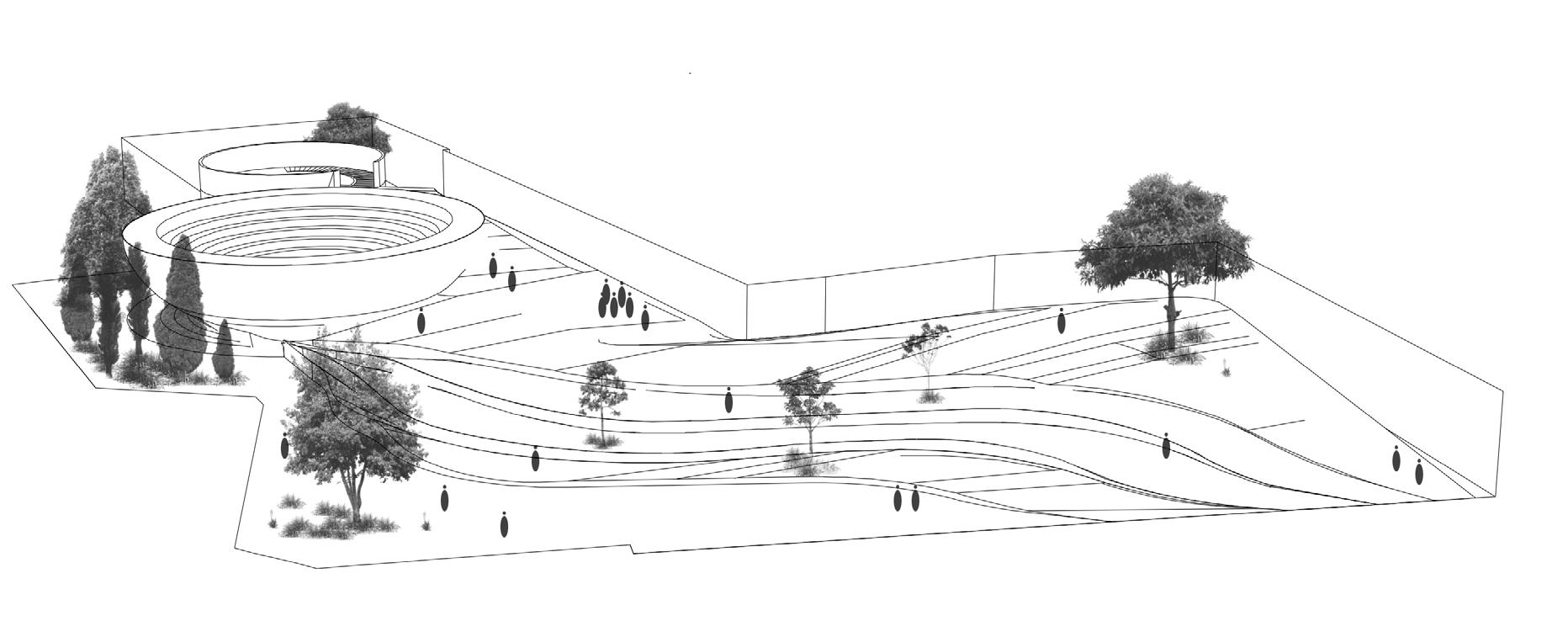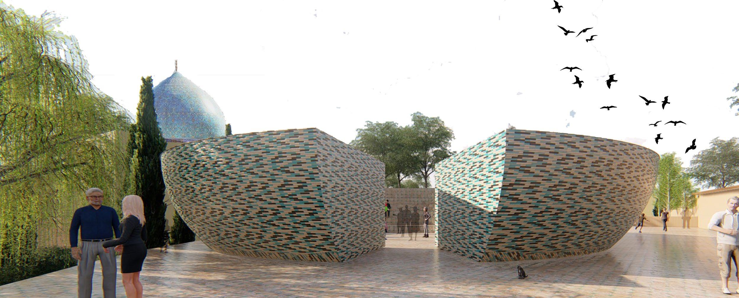 The project envisions the urban space as a theatrical stage, incorporating historical and compact urban elements. It seeks to address the limited urban space by introducing openness and dynamism. The site features boundary-defining walls with greenery, ramps creating ascending platforms, and curved guiding lines leading individuals into the historical fabric. The main underground space accommodates various activities, and an inverted dome structure, inspired by Isfahan’s domes, serves as the focal point. Random use of tiles and bricks on the dome represents a contemporary aesthetic. Movable walls allow personalization of space, and strategic lighting enhances night visuals, creating a vibrant urban experience.