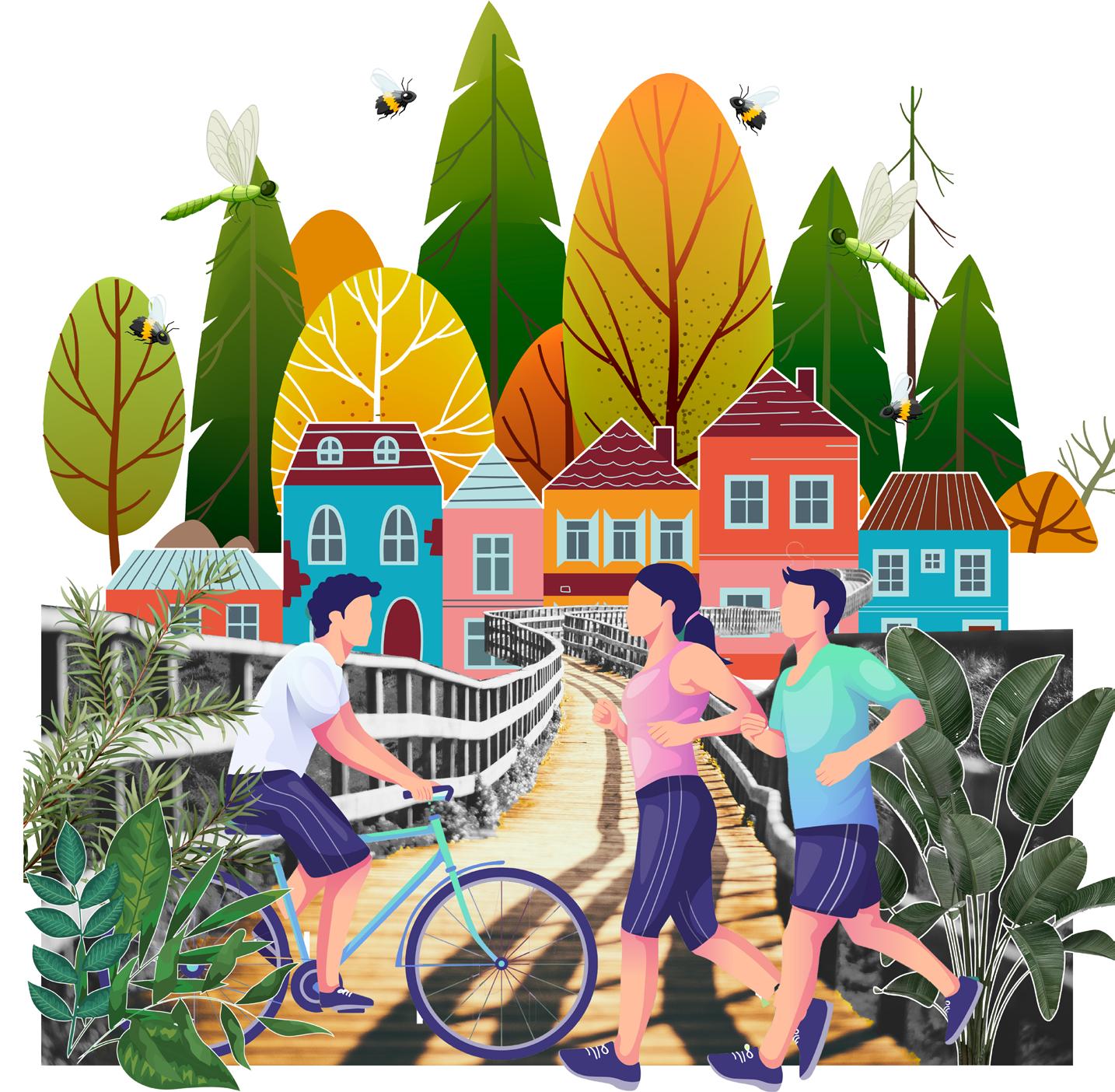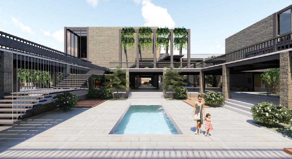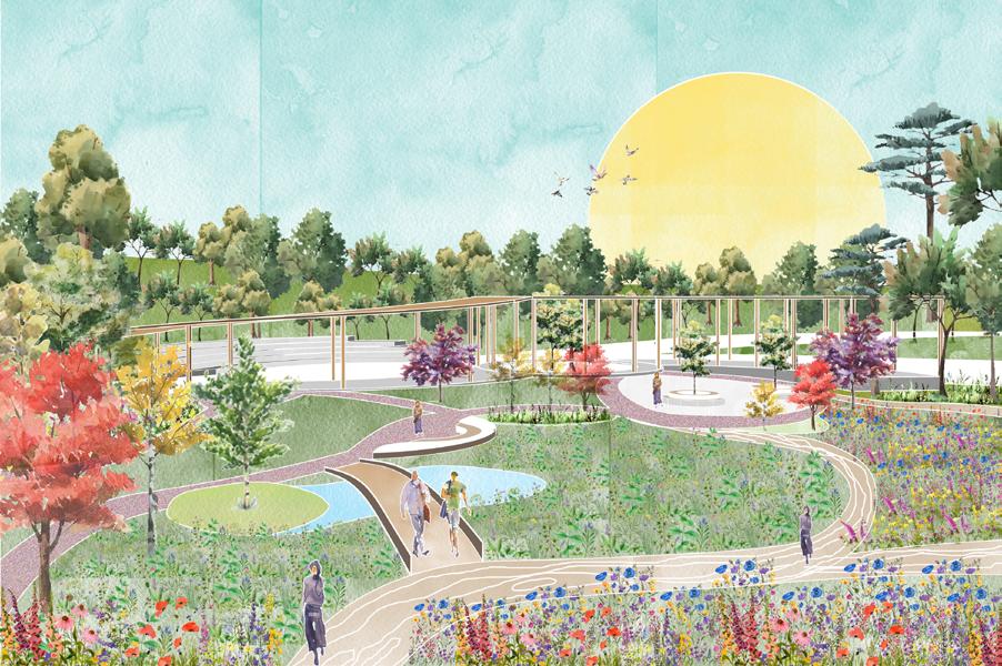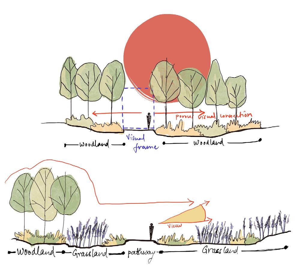 Biodiversity enhancement: I strategically integrated green zones into the site which would harmoniously coexist with the existing flora, providing space for well-being gardens, pollinatorfriendly gardens, wildflower meadows, and more.
