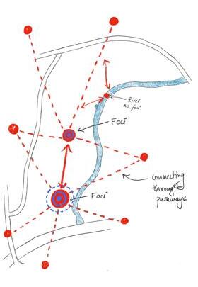 LA1B 18 SUSTAINABLE STOCKPORT SITE ANALYSIS THRESHOLD+ PATHS FOCI SPACE Creating threshold points along the pathway Connecting access points Increasing visual connection to river Creating central focus point Connecting Varies focus points with pathways Focus points along the water body Dividing the space into different region Adding green buffer Dividing the residential and public spaces with community areas