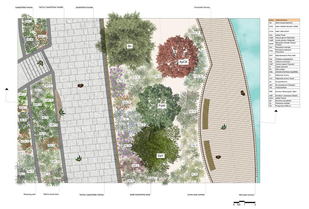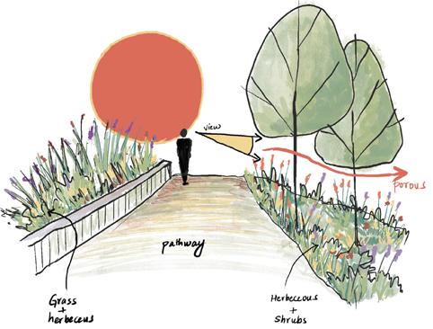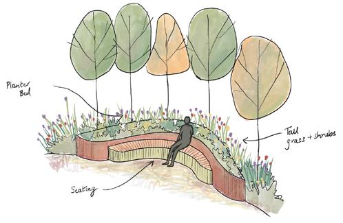 LA1B 17 SUSTAINABLE STOCKPORT STOCKPORT, SK5 7SA perrenial and grasses to engage with the passerby. CONCEPTUAL SKETCHES+ SECTIONS