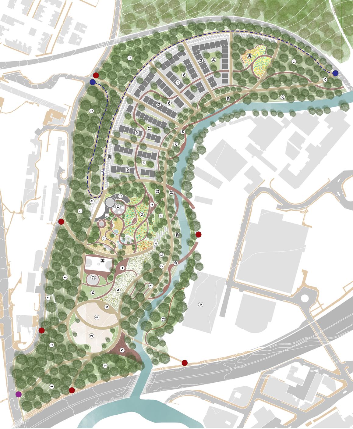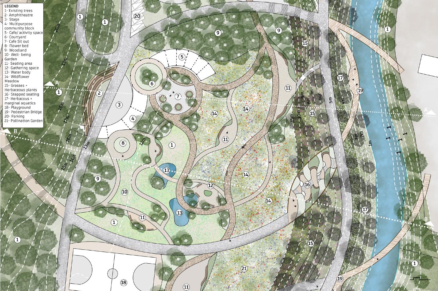 River Rejuvenation: Recognizing the potential of the redundant river, I designed spaces to enhance its connection with the community.