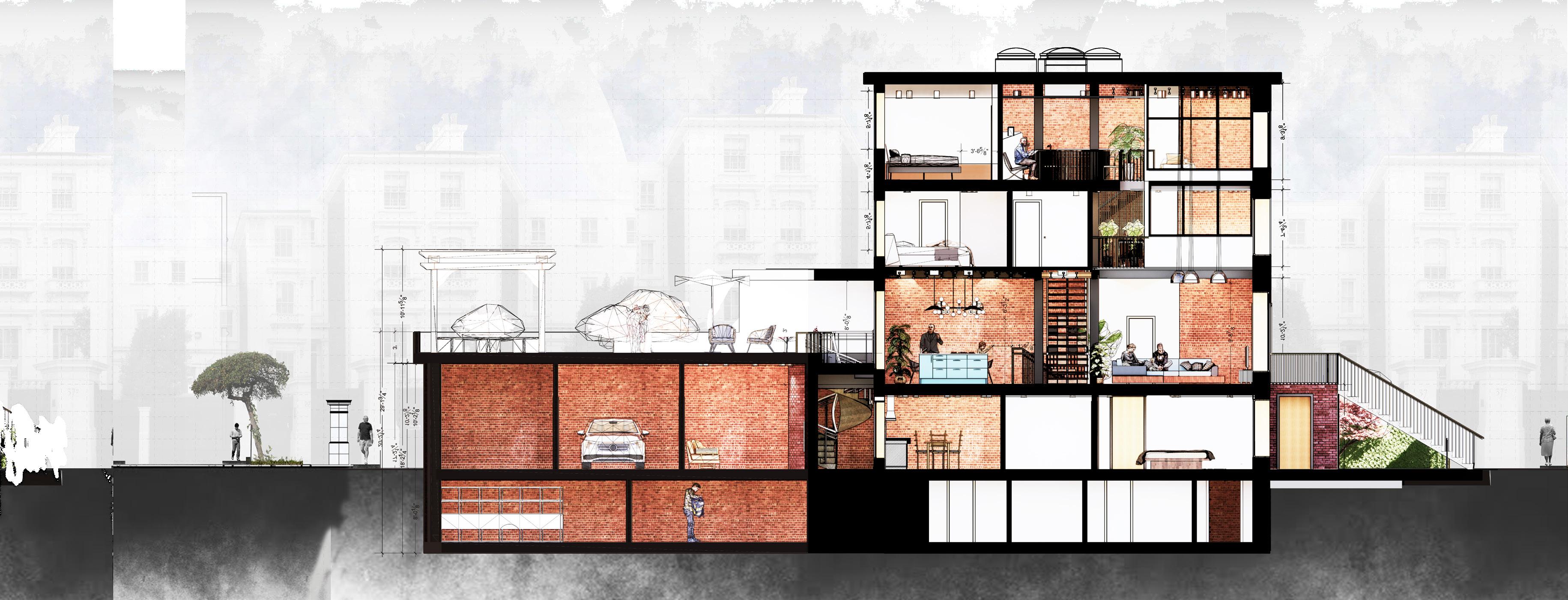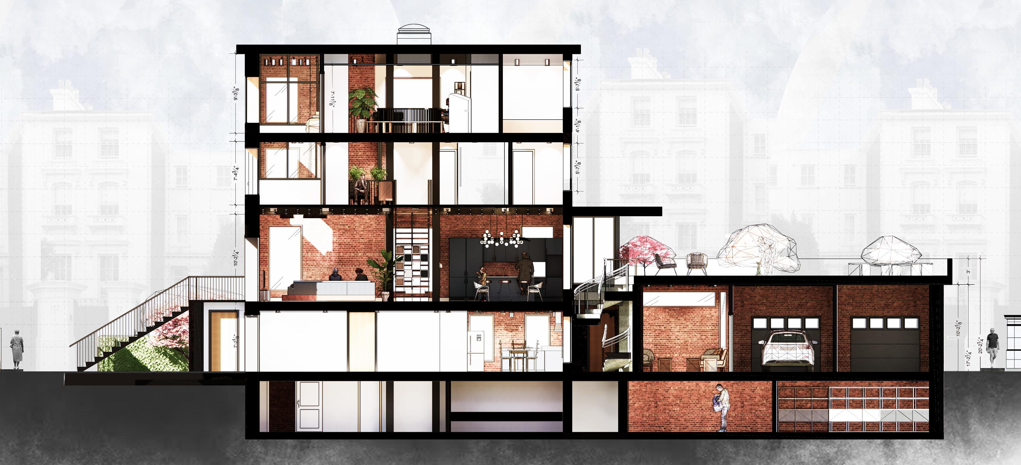 Brownstone houses in Brooklyn are the best representation of the past history from the mid-19 th century to the artistic movements that mainly emphasized the honest expression of the building elements but also the integration of natural elements like brick. This family has elderly parents, teenagers and young children. The interior space is designed to have fully accessible space for seniors. An intergenerational connection space that brings the family together in pandemic time. The concepts of juxtaposition design of preserving the past history and developing the future were presented in the uses of materials, spatial planning, universal design on the ground level and honesty expression of built materials. With the consciousness of sustainable design, the Interior space has Comprehensive layered lighting, maximum daylighting penetration and sustainable materials.