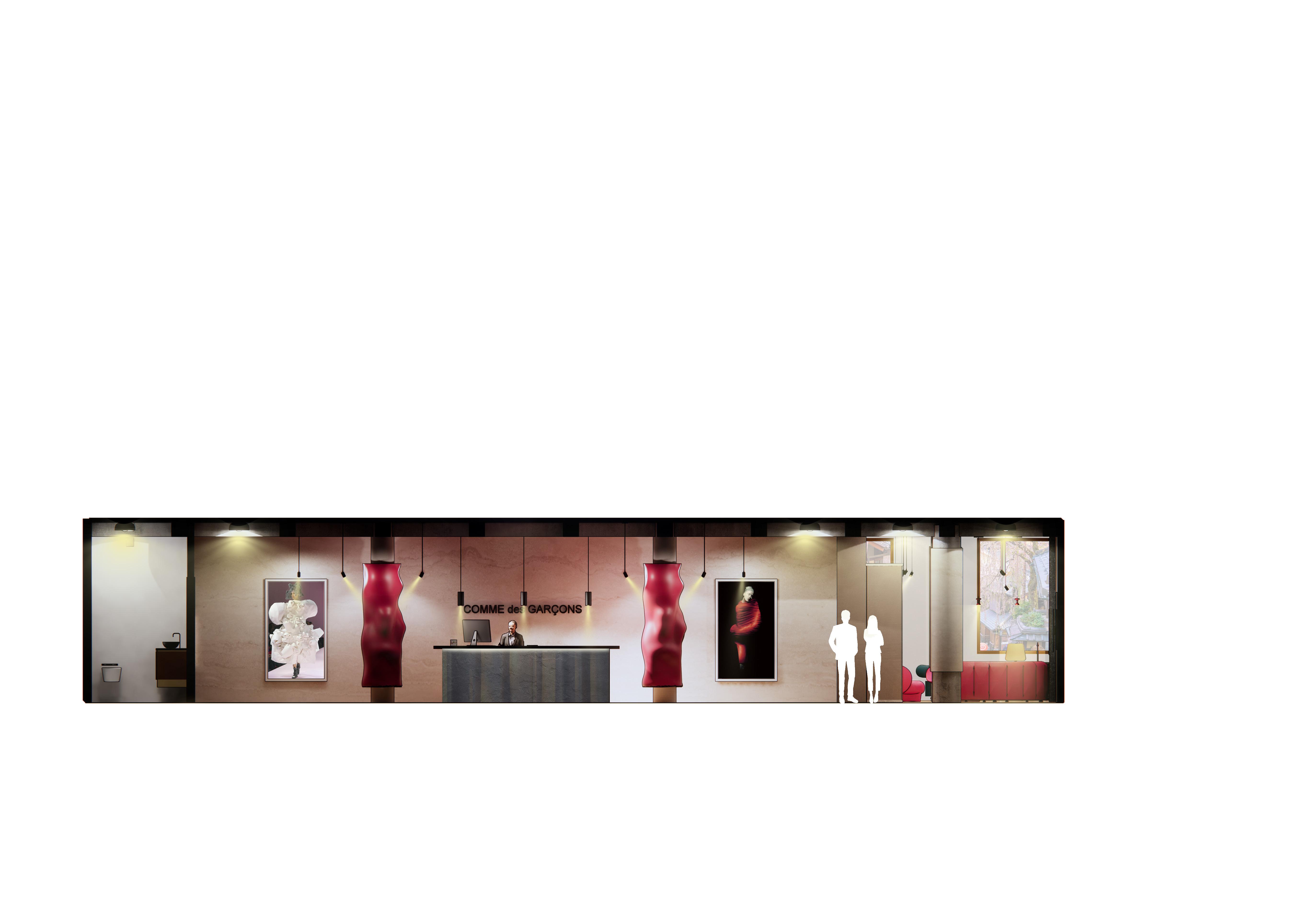 REI KAWAKUBO’s restructuring of the human body through form-work and materiality are especially compelling while approaching the design for the fashion house’s new office space. The existing space, a straightforward segment of a nondescript floor plate with cylindrical columns and a structural overhead grid, provides a canvas within which the function of the office and playfulness of the brand can be expressed.