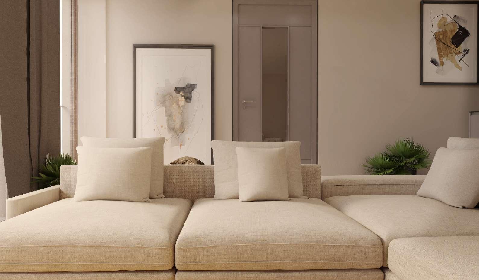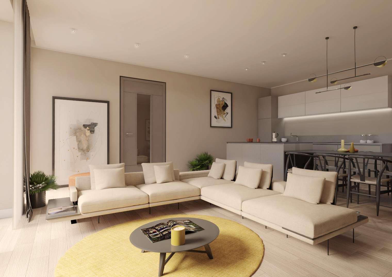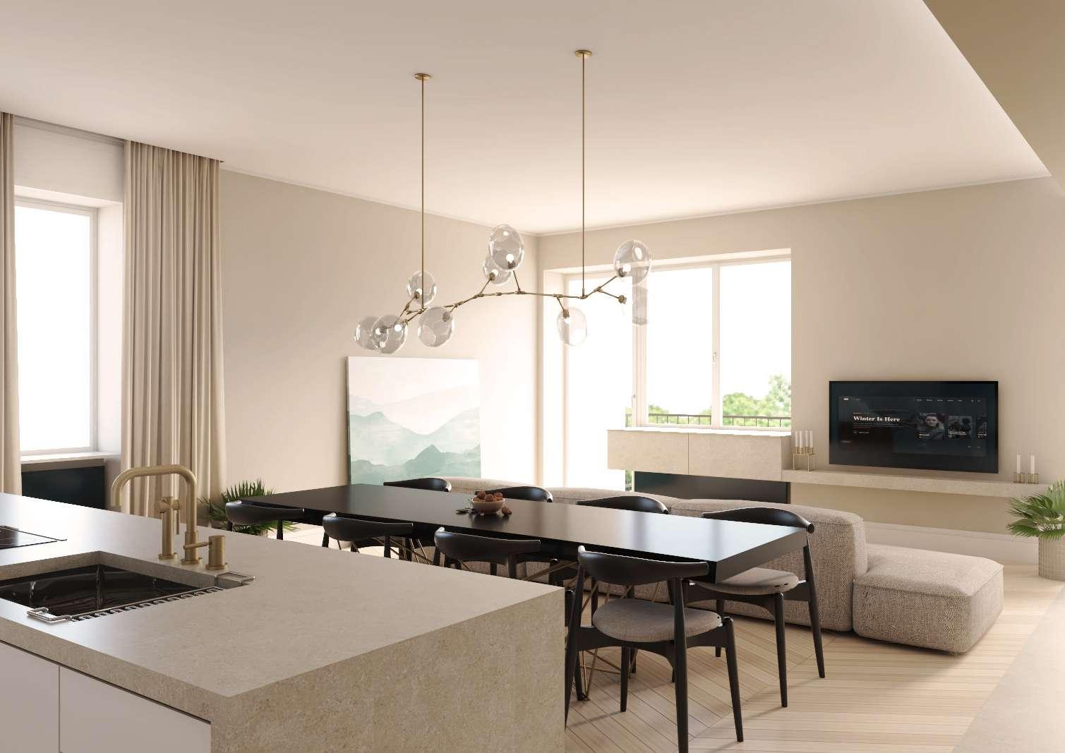 La cucina e zona living sono open-space per dare maggiore respiro alle ampie vetrate che si affacciano sul terrazzo privato.