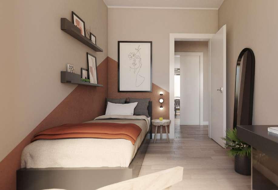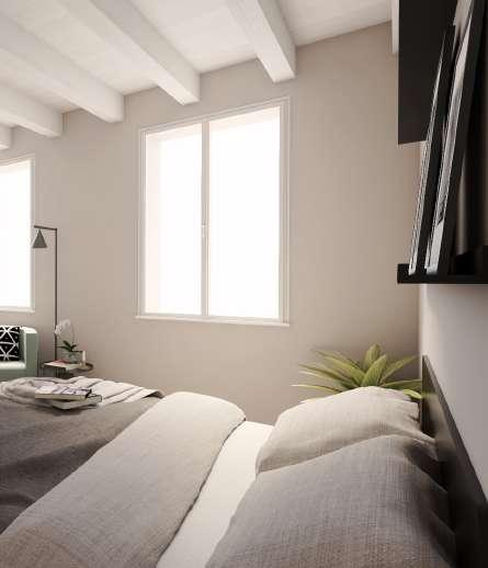 La zona notte è composta da due camere; la prima matrimoniale, gode di accesso diretto al bagno ed è dotata di un’ampia finestra che la rende molto luminosa. La seconda invece è una camera singola con bagno adiacente.