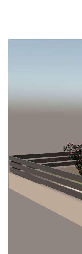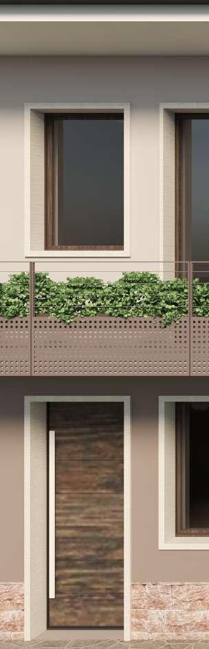 L’effetto finale richiama il legno dei travetti dei balconi e del terrazzo.