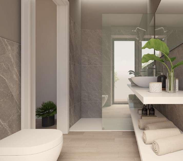 I sanitari, così come i sostegni e i colori utilizzati ricercano un’atmosfera rilassata.
