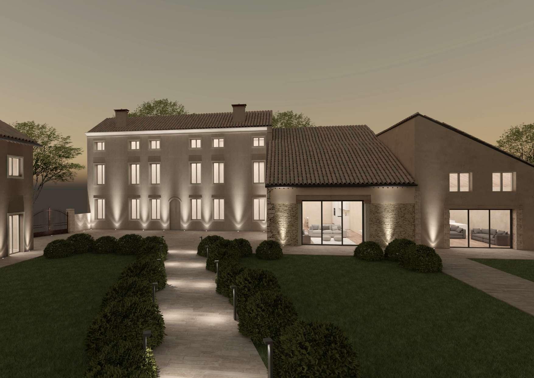 I sassi delle murature vengono esaltati nella matericità delle facciate esterne, così come le ampie aperture ad arco, valorizzate nella loro bellezza.