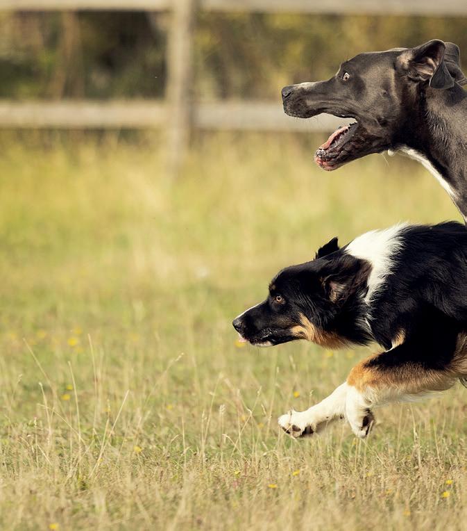 LA OSS LIKE GODT slå det fast en gang for alle: Alle hunder er unike individer. Det !nnes hunder i alle størrelser og farger. Noen har ører som henger, mens andre har stående ører. De kan ha korte eller lange ben. De kan være rolige eller temperamentsfulle. De kan være sosiale eller sjenerte. Men nesten uansett hvordan hundene er, har de noen grunnleggende likhetstrekk: