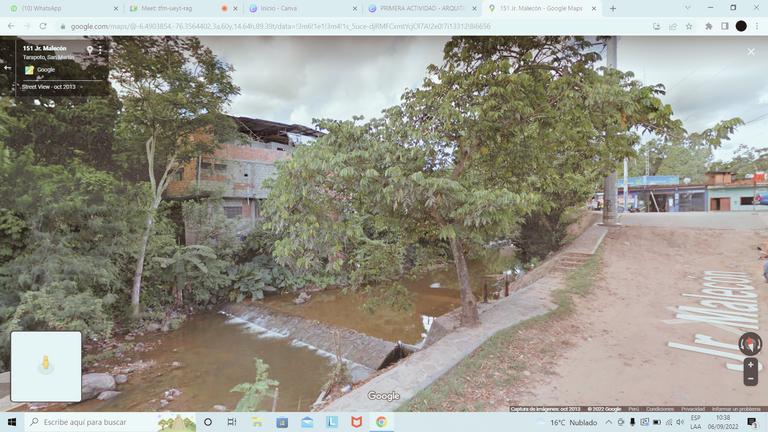 La quebrada del rio inicia en este sector, lo que genera riesgos de desastres naturales ya que presenta viviendas situadas a orillas de este