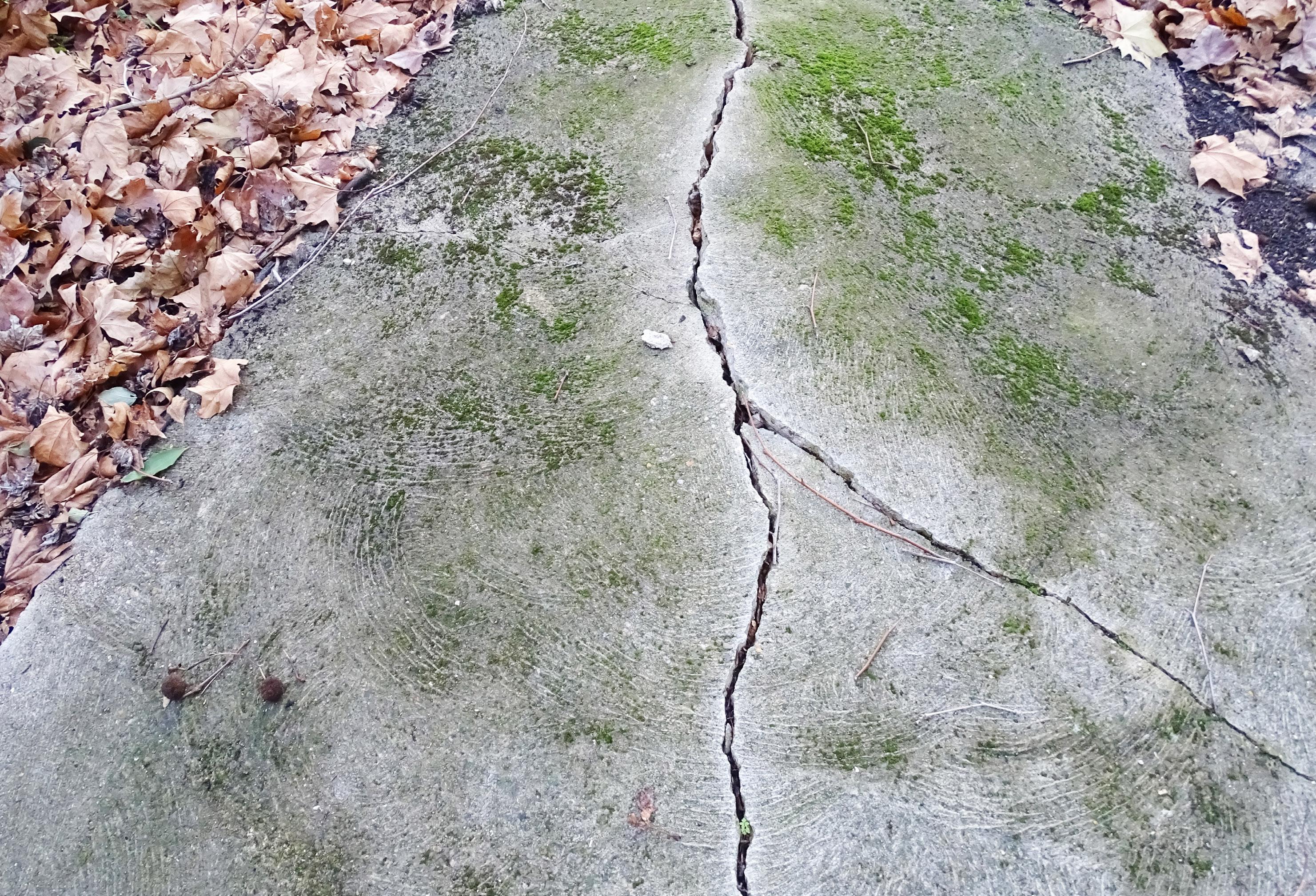 22_ Les racines des arbres ont progressivement déformé le sol minéral de la cour basse.