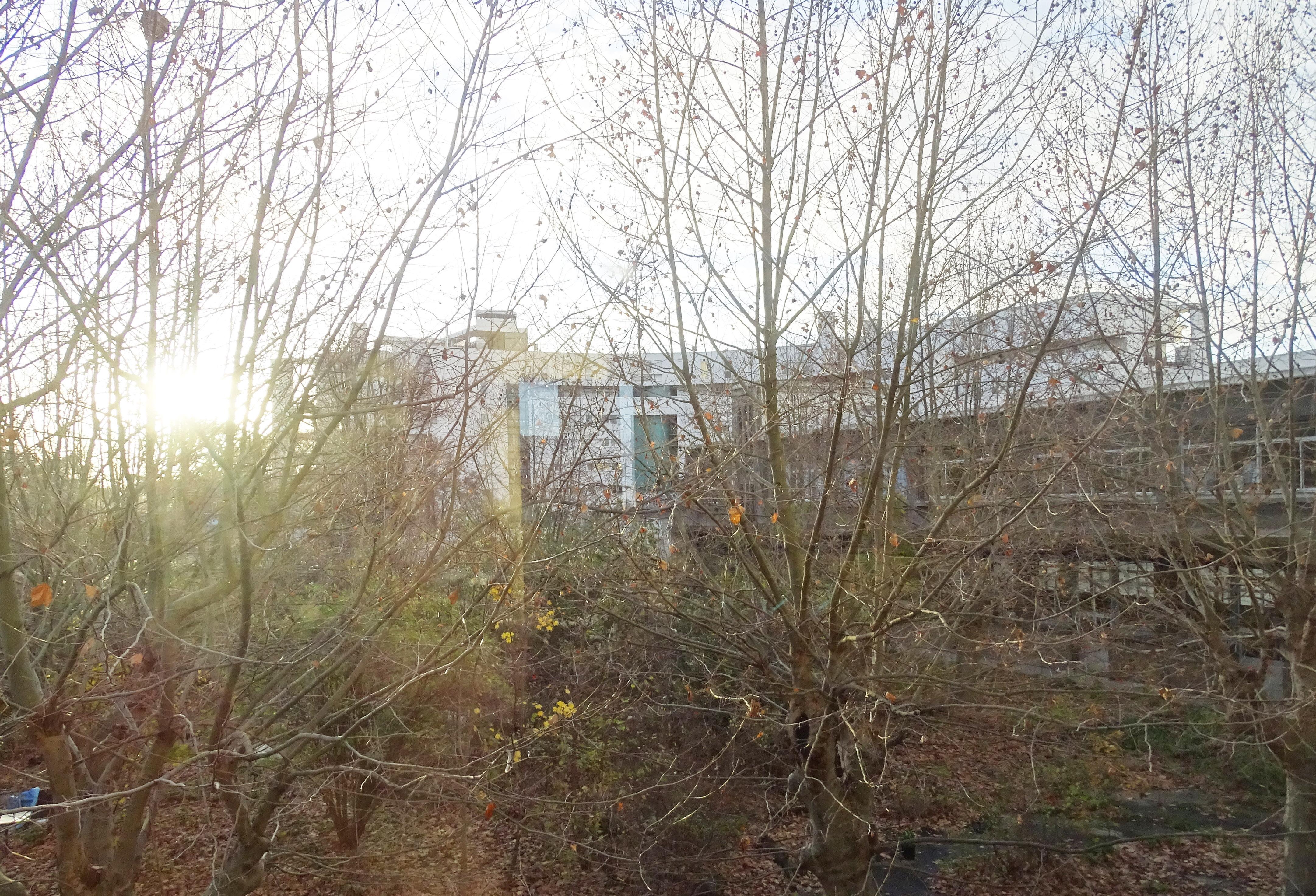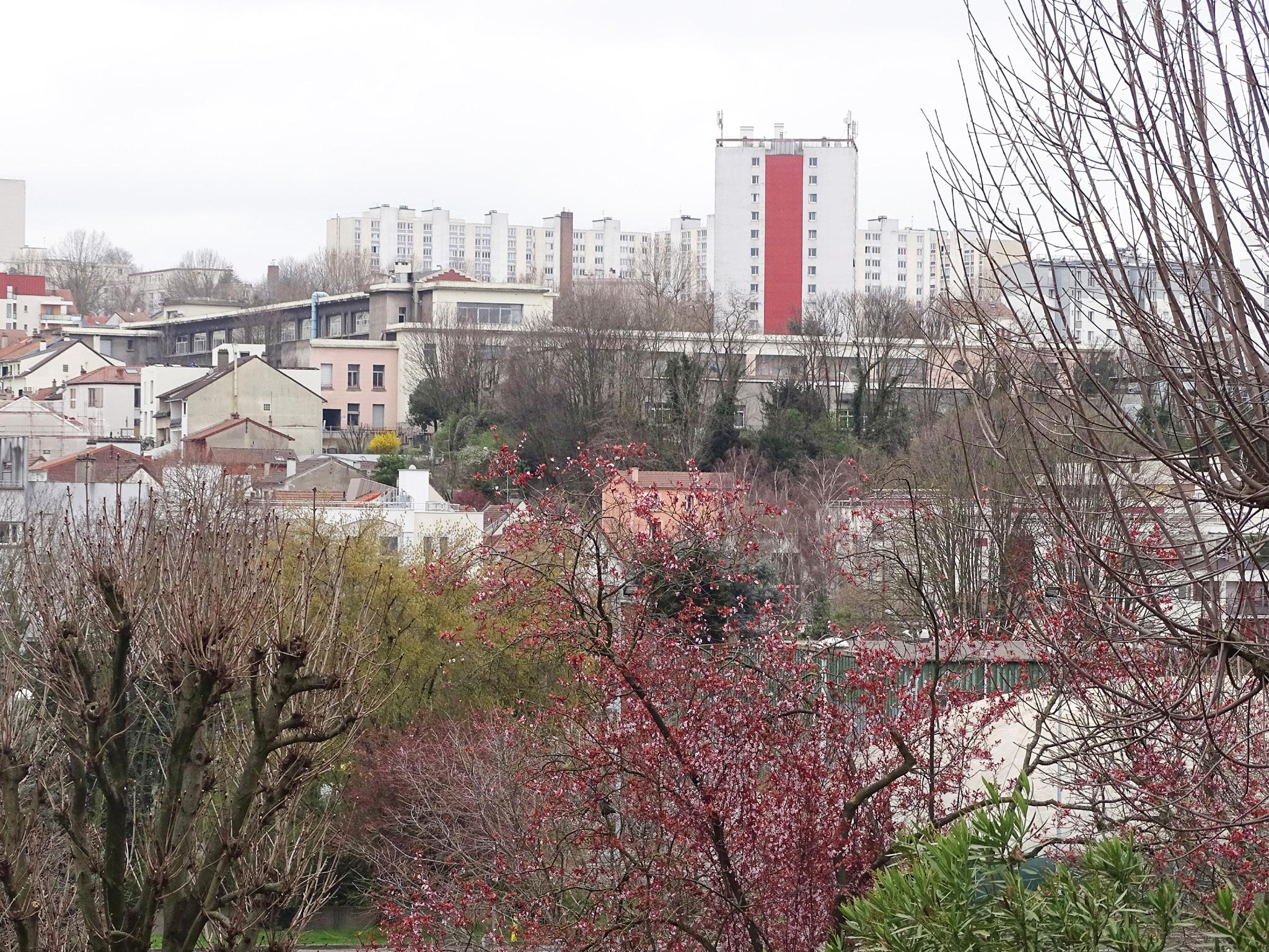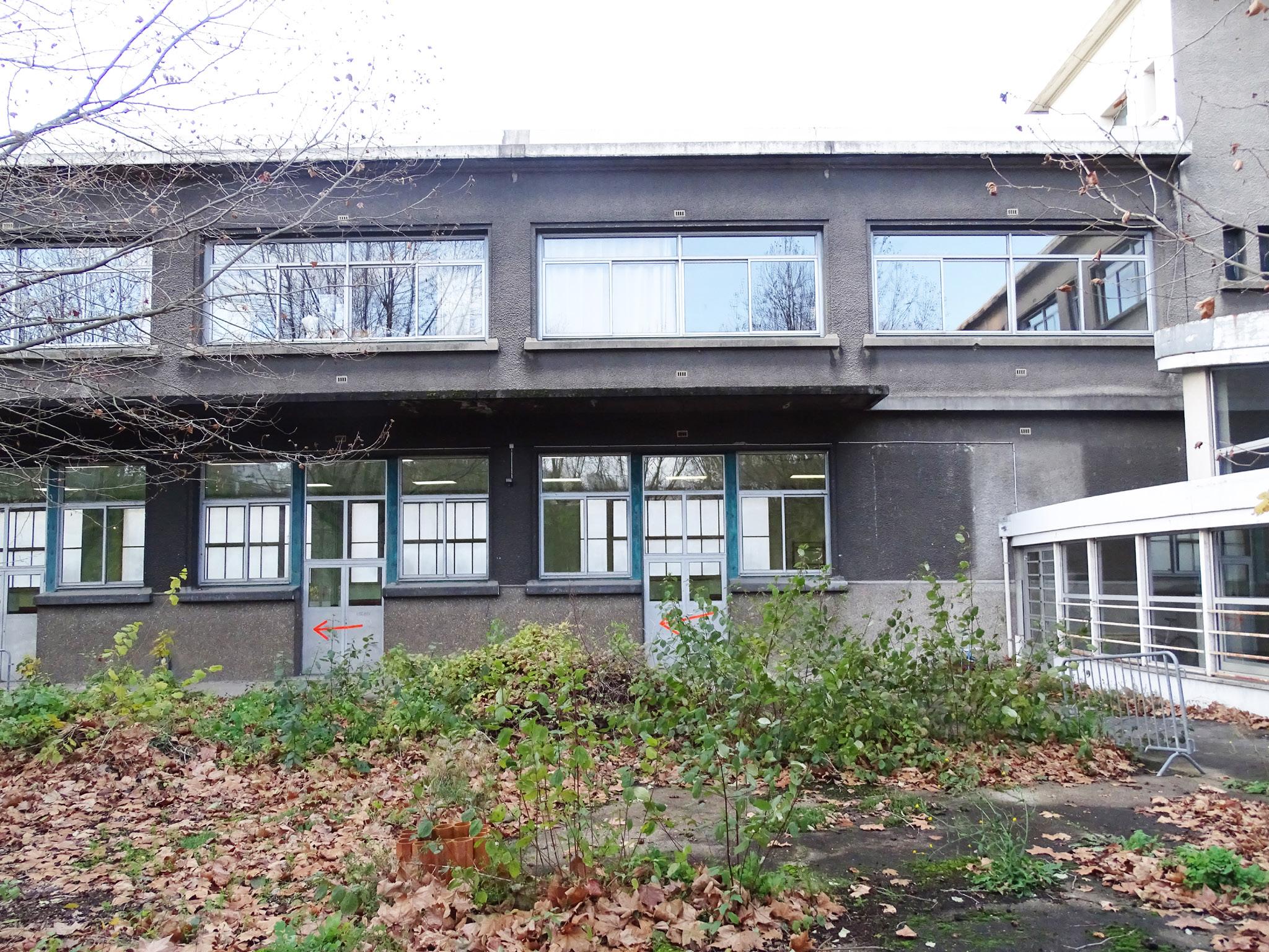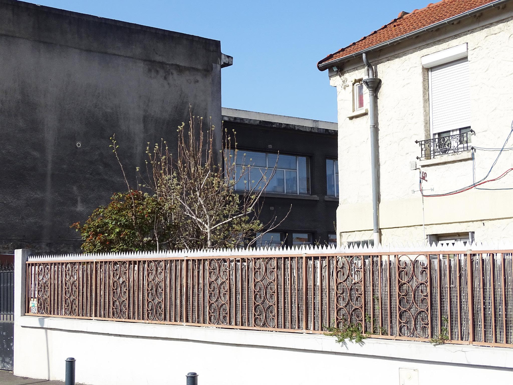 2_ La hauteur, de seulement deux niveaux, du groupe scolaire Pierre Curie lui permet de se fondre derrière les pavillons de la rue du Bel Ecru.