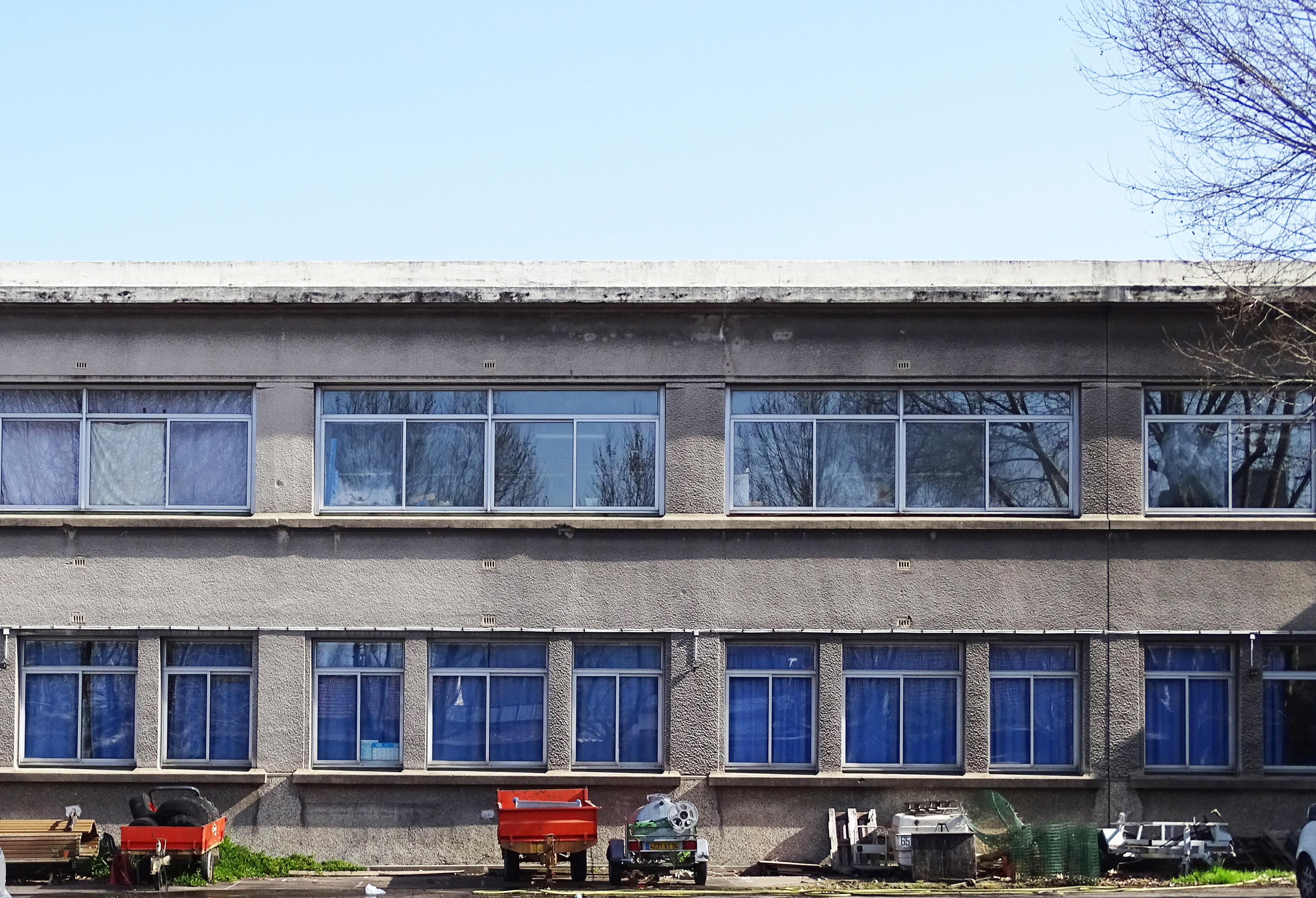 7_ La façade de l’édifice bas agit fond de scène. Il laisse présager qu’une transparence de l’édifice offrirait de larges vues sur le reste de la Vallée de la Bièvre. Pour le moment, le mur de refend des cours opacifie les vues.