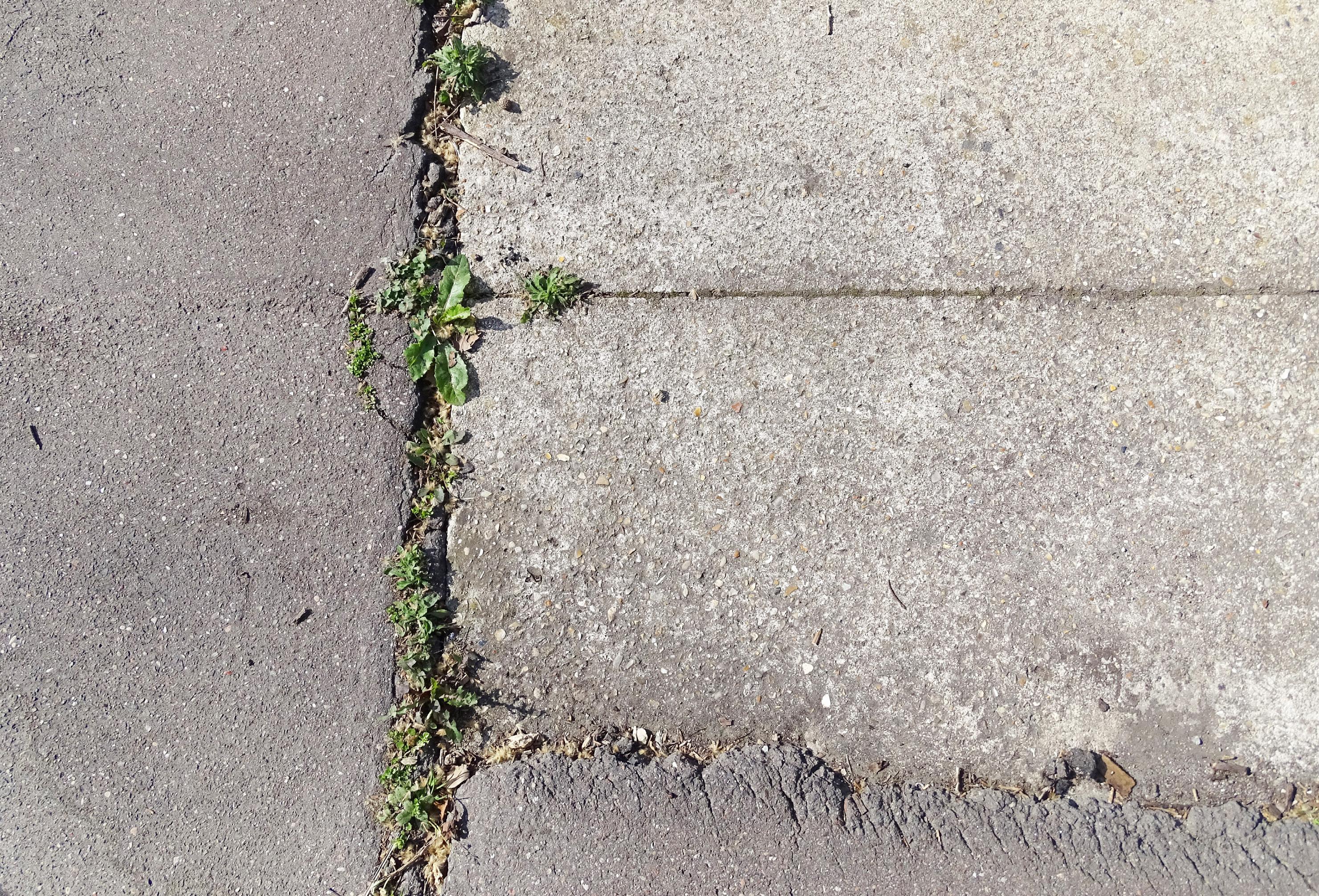 21_ Le sol abîmé des cours laisse deviner une succession de couches s’étant superposées dans le temps. Dans les interstices la nature prend place.