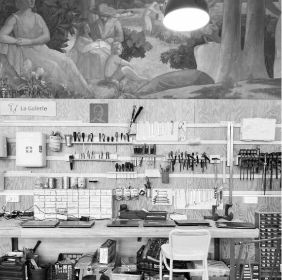 Ce travail s'est appuyé un ensemble de ressources ; la documentation de l’existant recherchée aux archives de la mairie de Gentilly 7, les quelques récits du gardien de l’école et des différentes personnes présentes sur ou autour du site 8 et les nombreuses visites du site. J’ai tenté d’explorer l’existant et le projet par divers mediums comme la photographie, la maquette et le dessin. Ils m’ont amenée à regarder, cadrer, fragmenter... Un long travail de compréhension du bâti a occupé la première partie de l’année. Il a été la première approche du lieu.