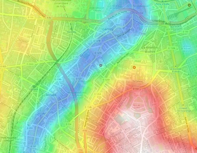 Lden : Level day-evening-night est un indicateur de bruits accumulés sur 24h dB(A) : niveau d’intensité sonore en décibel source : carto.bruitparif.fr