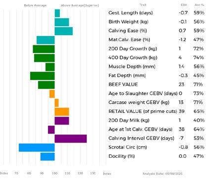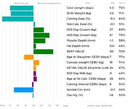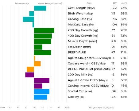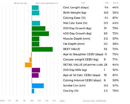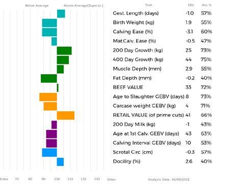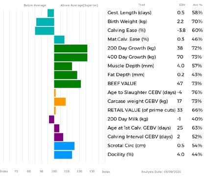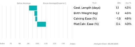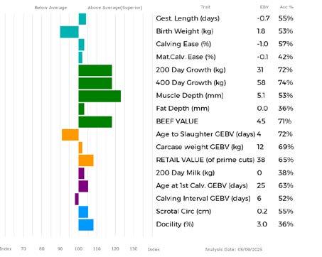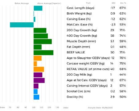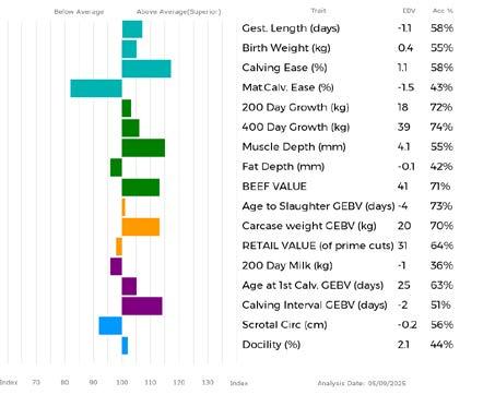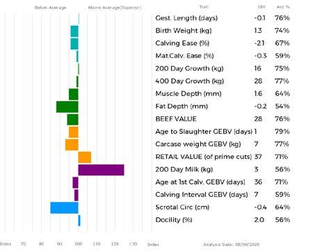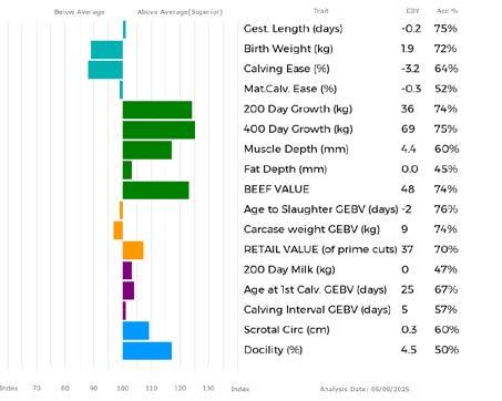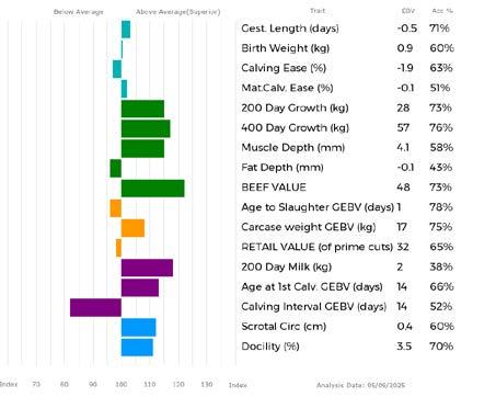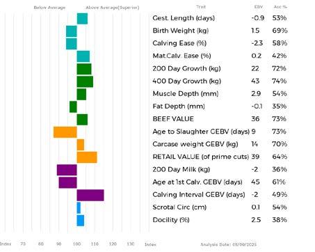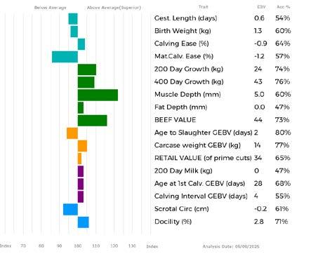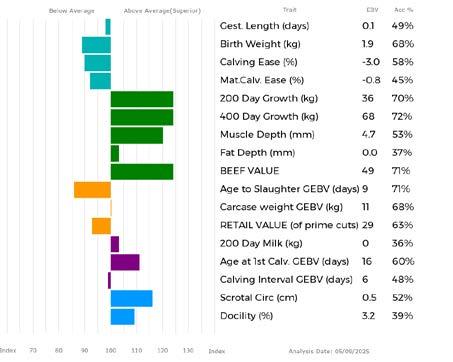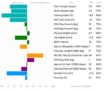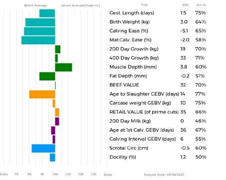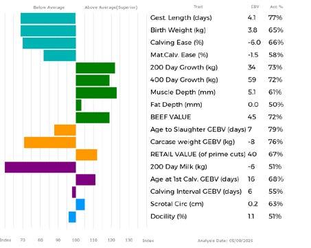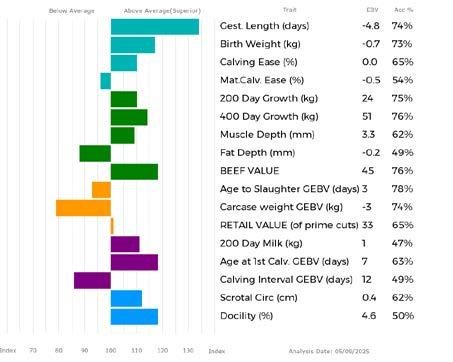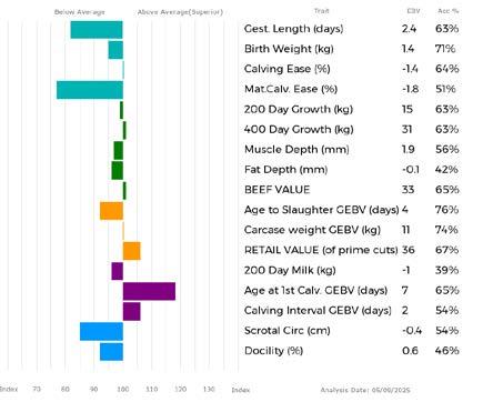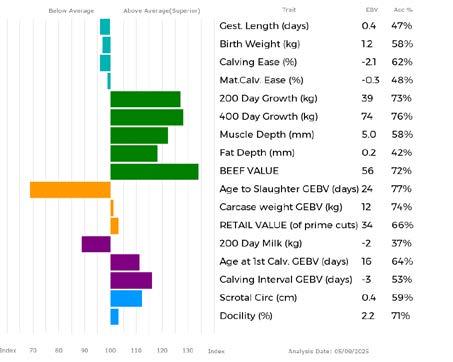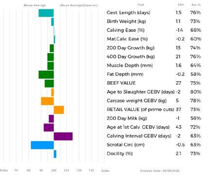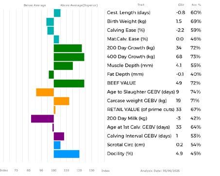✓ Bars that lie to the right of that line indicate EBVs/GEBVs that are above average. The further to the right they lie, the higher above Breed Average they are.