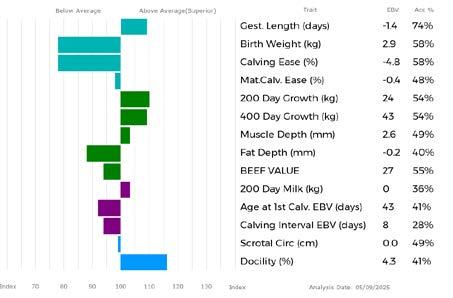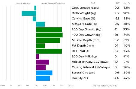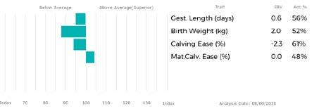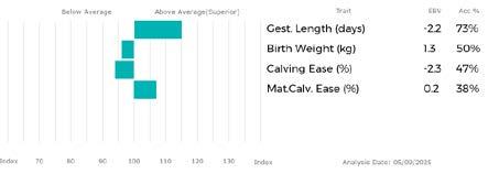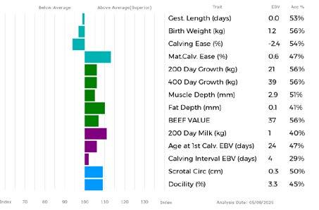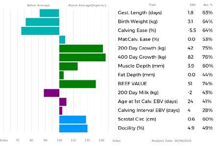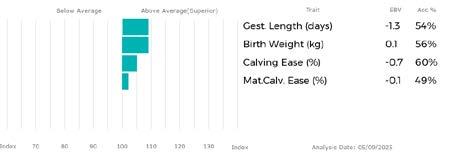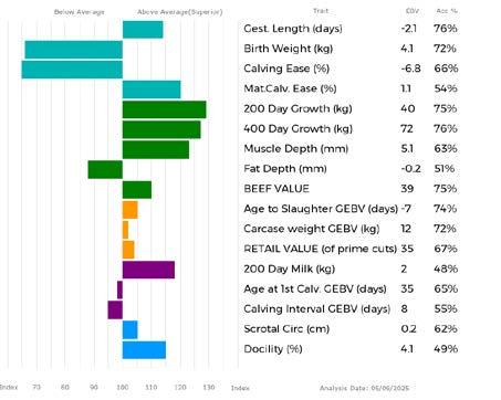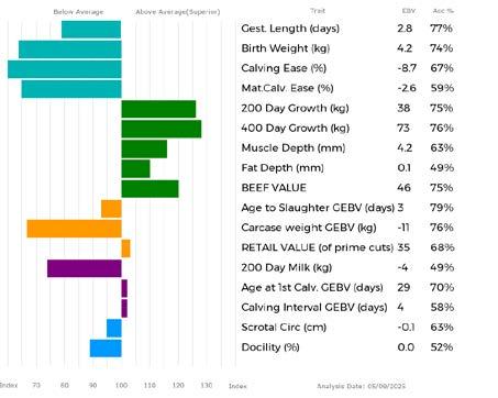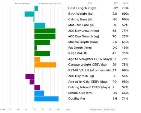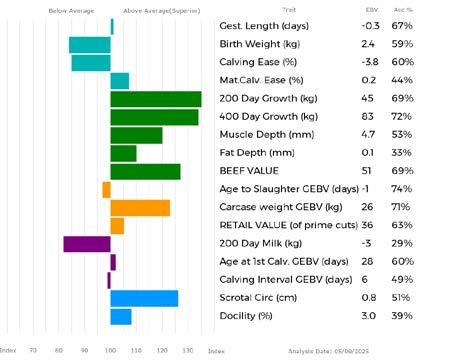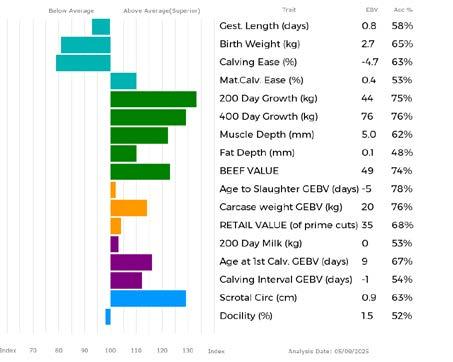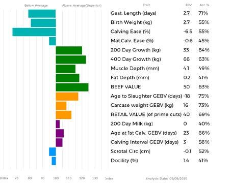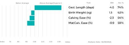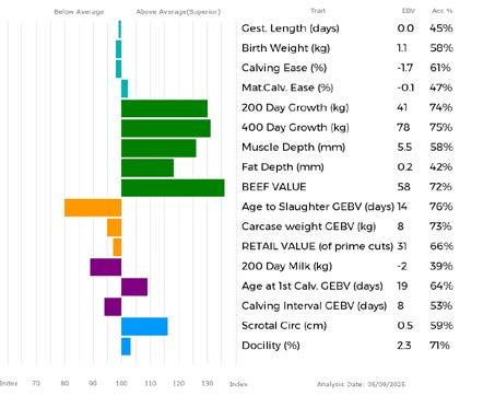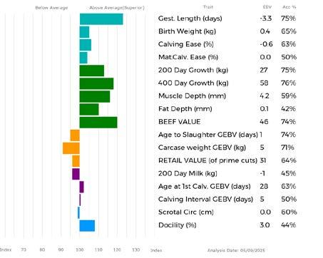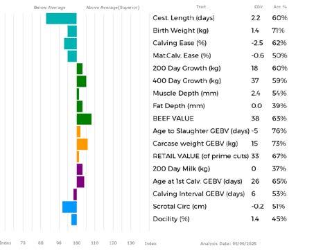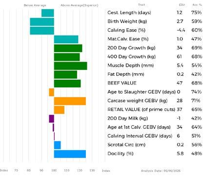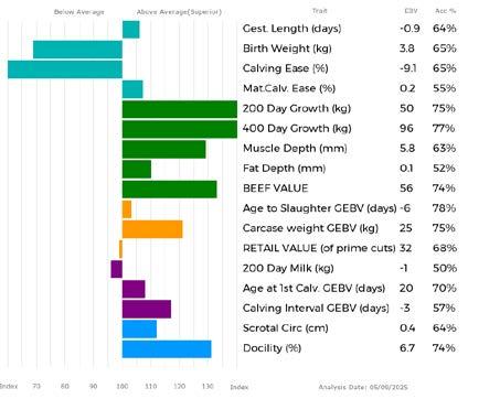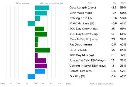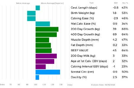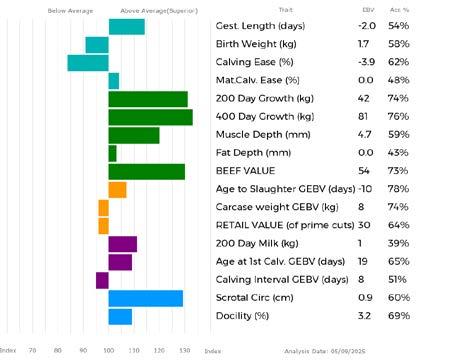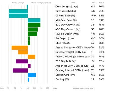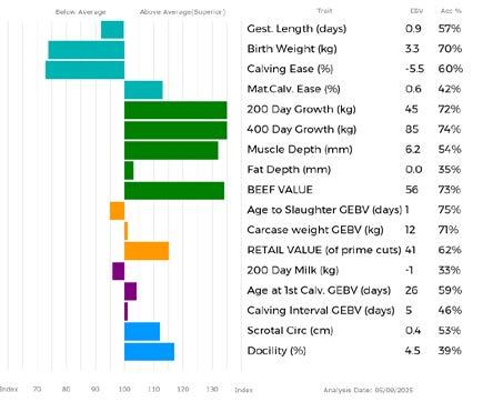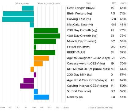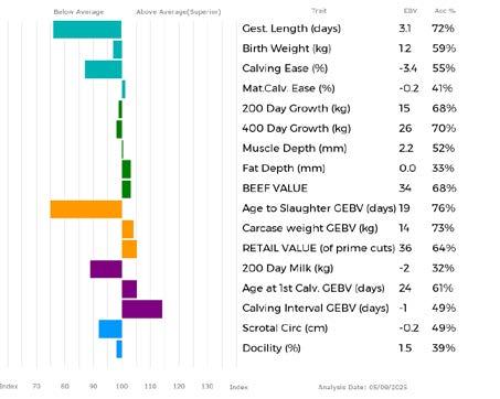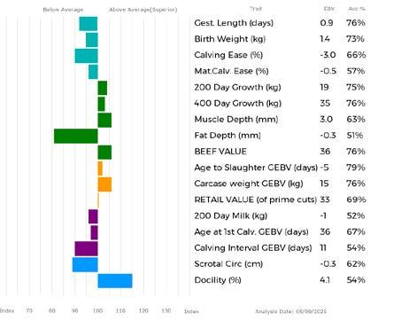 ✓ Bars that lie to the right of that line indicate EBVs/GEBVs that are above average. The further to the right they lie, the higher above Breed Average they are.