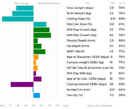 All information presented for the purposes of this sale, including but not limited to pedigree records, DNA data, breeding values and other animal and herd records, is compiled from material supplied by members, owners, and/or third parties. While every effort is made to ensure accuracy, the Society and its officers and employees make no representation or warranty, expressed or implied, as to the accuracy, reliability, completeness, or correctness of the information. Users should not rely solely on this information for making decisions and are advised to obtain independent verification or professional advice where appropriate. The content is provided for general information purposes only and does not constitute veterinary, professional, or legal advice.