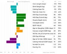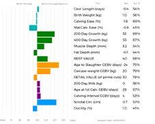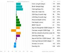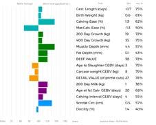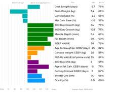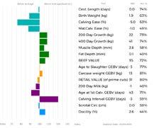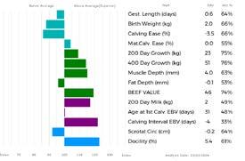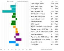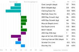 ✓ Bars that lie to the right of that line indicate EBVs/GEBVs that are above average. The further to the right they lie, the higher above Breed Average they are.