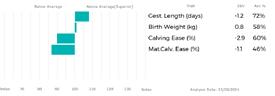 ✓ Equally, bars that lie to the left of the line indicate EBVs/GEBVs that are below Breed Average. The further to the left they are, the further below Breed Average they are.