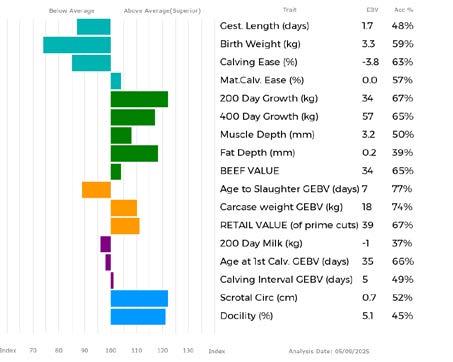 ✓ Bars that lie to the right of that line indicate EBVs/GEBVs that are above average. The further to the right they lie, the higher above Breed Average they are.