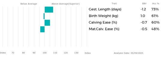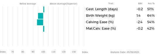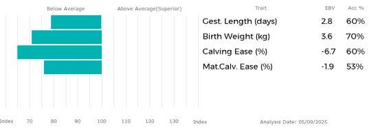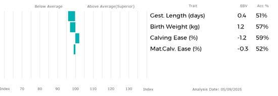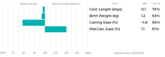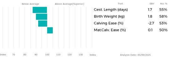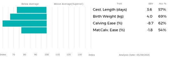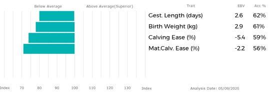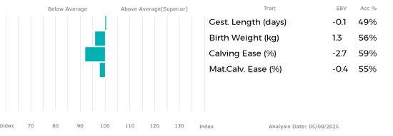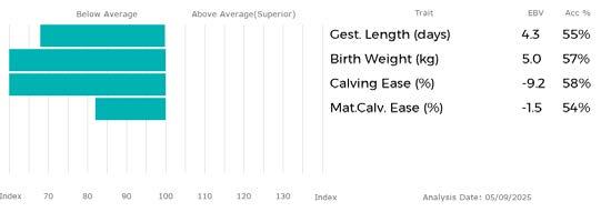 All information presented for the purposes of this sale, including but not limited to pedigree records, DNA data, breeding values and other animal and herd records, is compiled from material supplied by members, owners, and/or third parties. While every effort is made to ensure accuracy, the Society and its officers and employees make no representation or warranty, expressed or implied, as to the accuracy, reliability, completeness, or correctness of the information. Users should not rely solely on this information for making decisions and are advised to obtain independent verification or professional advice where appropriate. The content is provided for general information purposes only and does not constitute veterinary, professional, or legal advice.