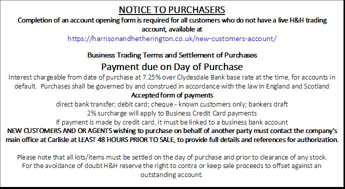• Sold under the conditions of sale as displayed in the mart recommended by the Livestock Auctioneers Association for England and Wales with the exception of rule 53(A) which will be adopted as follows Maiden heifers sold for breeding purposes