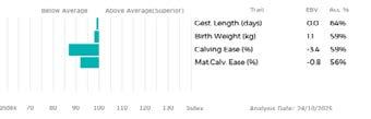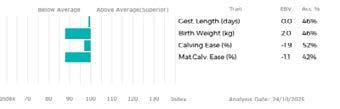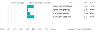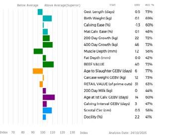✓ Bars that lie to the right of that line indicate EBVs/GEBVs that are above average. The further to the right they lie, the higher above Breed Average they are.