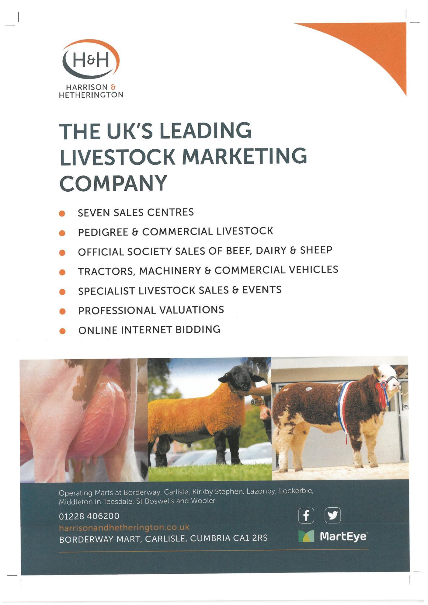 • Sold under the conditions of sale as displayed in the mart recommended by the Livestock Auctioneers Association for England and Wales.