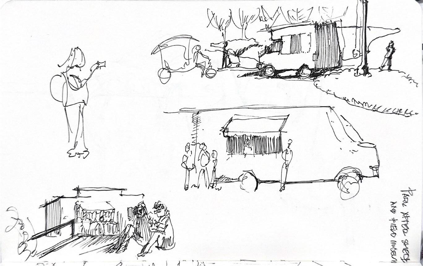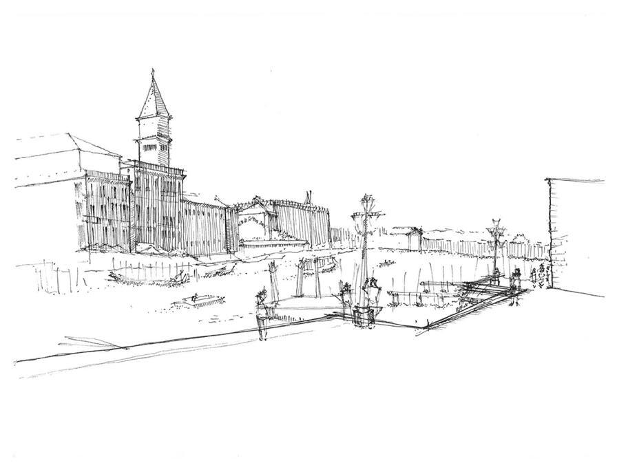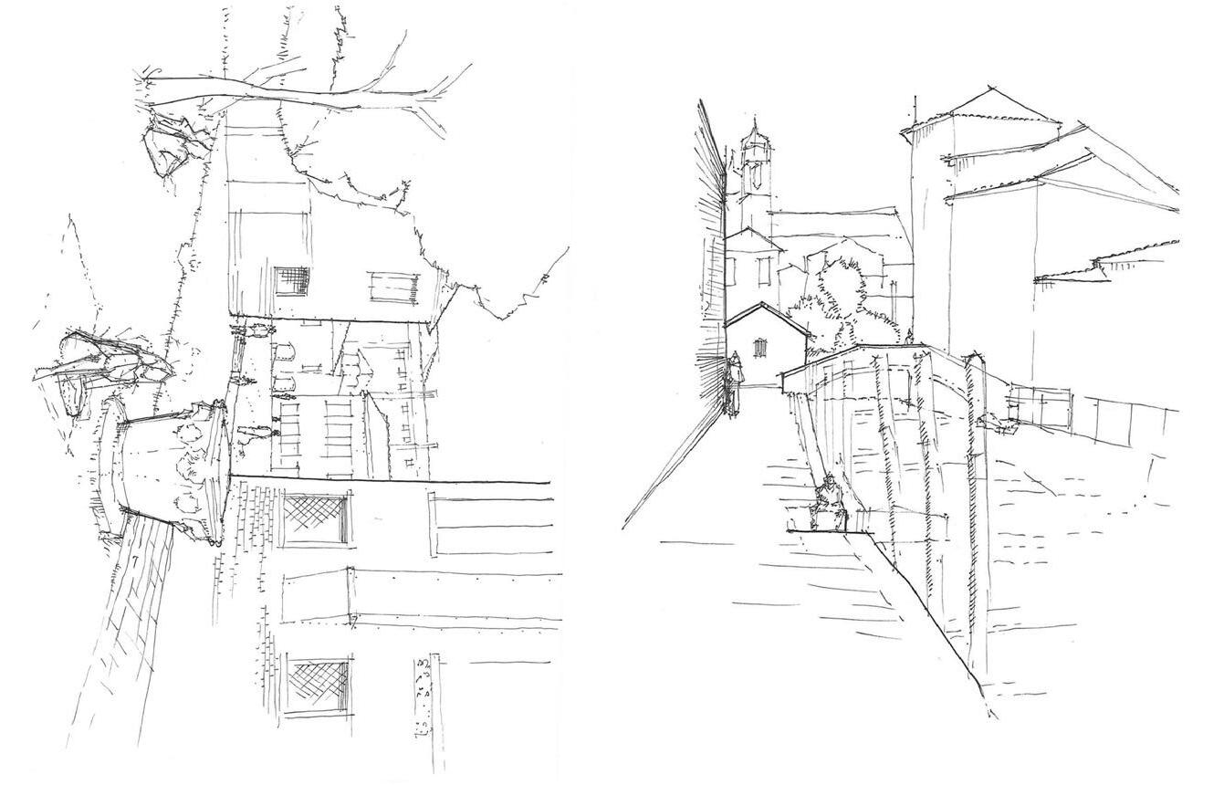 Sketching studies saw relationships between people, water, land, and their built environment. This series explored a campo on the island's south end.