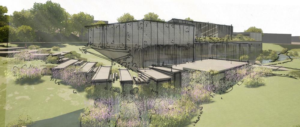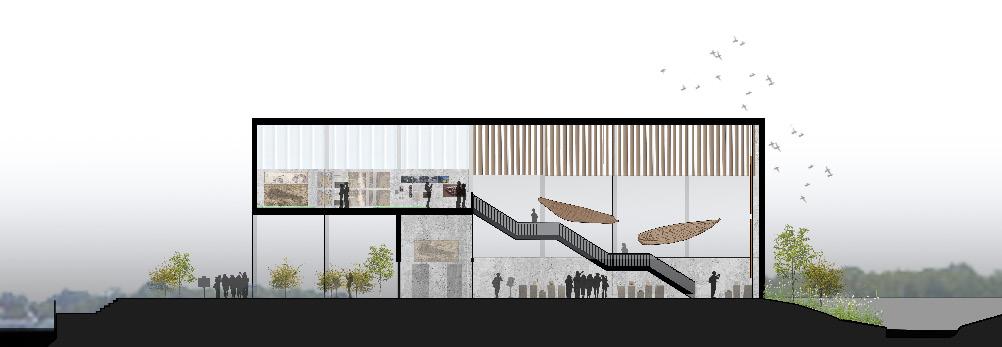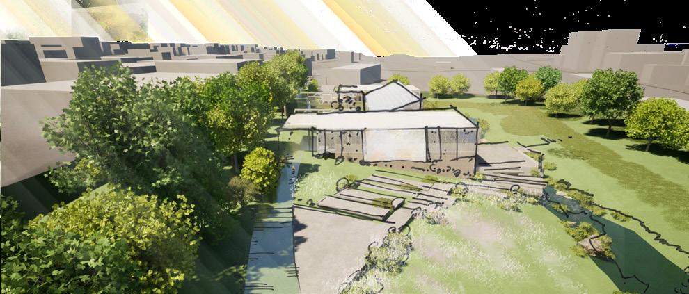 The site's flat, marshland organized, urban activity that Pedestrian paths converge overlapping marshy water, vegetation To the south, flexible free, intimate experiences interactive farmland, water the subtle, but deeply nuanced