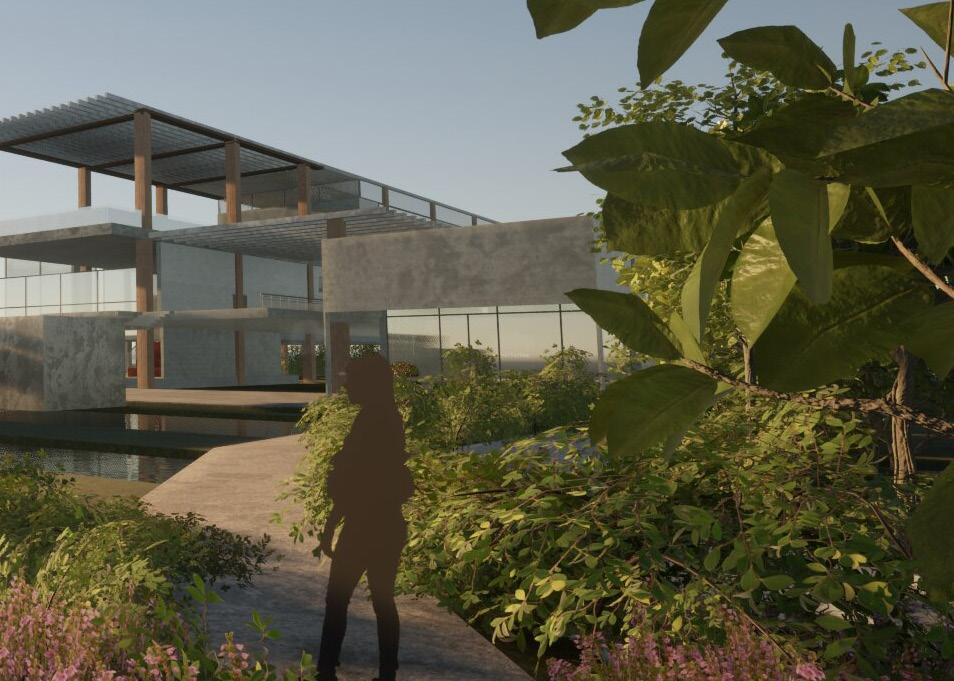 Sant' Erasmo's fabric is a distinct, patchwork composition of sprawling water channels and complex elements of farmland, gardens and raw site. The proposal seeks to embody, exalt and rise from the island's interactions between overlapping water, lush vegetation and walkable path.