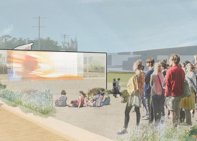 Through raised platforms, wide, lit ramps and tactile wayfinding, this entry plaza directly responds to West Oakland with a community haven protecting from flooding and vehicular traffic while encouraging entry through the rest of the site.