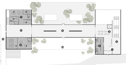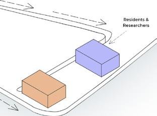 Research Facility responds to private street Interior courtyard formed along water way