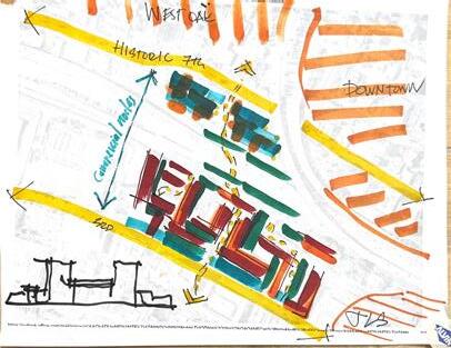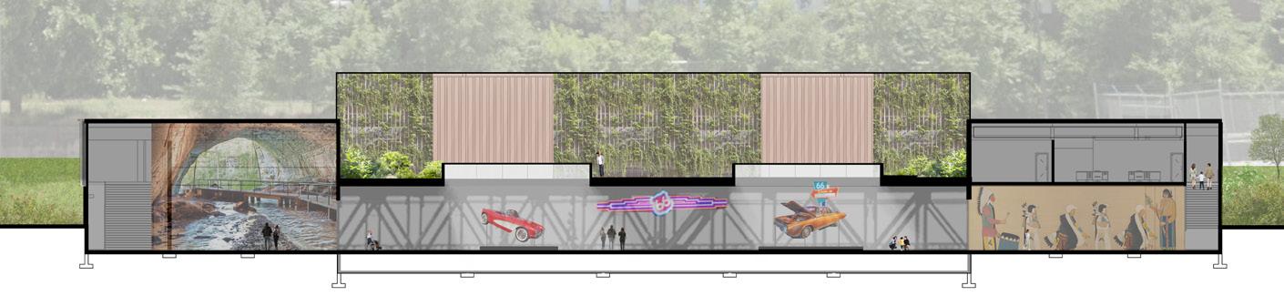 This is a proposal for a Route 66 Museum in Springfield's downtown area. This site was rich with opportunity: first being culturally-tied to Route 66 in the 20th century while also containing Jordan Creek, a historic landmark running through its center, around which Springfield formed.