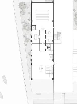 Through a layering of platforms and interactive, connective stairwell, the reading room is subdivided into community, lounging and private research spaces. A central loft and strips of windows provide researchers with a direct visual experience of the lagoon.