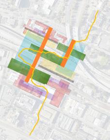 Oakland is one of the most diverse, walkable and historically-rich cities in the United States. However, the city's demographics and their health, financial and educational outcomes are disproportionately related to their race, access and environment. This studio, through urban and historical analyses, explored the roles of hybridized programming in historically redlined and highway-facing districts to heal and empower underserved communities.