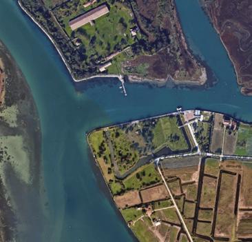 A complex fabric weaving farmland, the laggon and centuries-long milital history, the site is located at the island's northwestern tip facing the 15th-century quarantine island of Lazzaretto Nuovo.